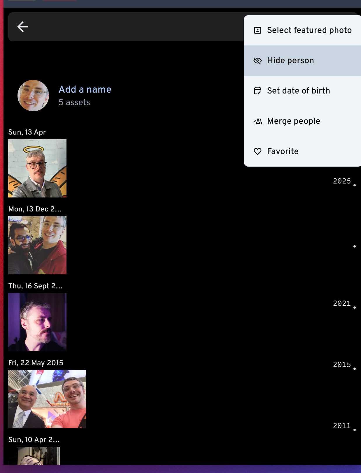 And had handy options for filling in more meta-data or hiding a person. If you fill in the date of birth, it’ll even tell you how old the person was when the photo was taken: