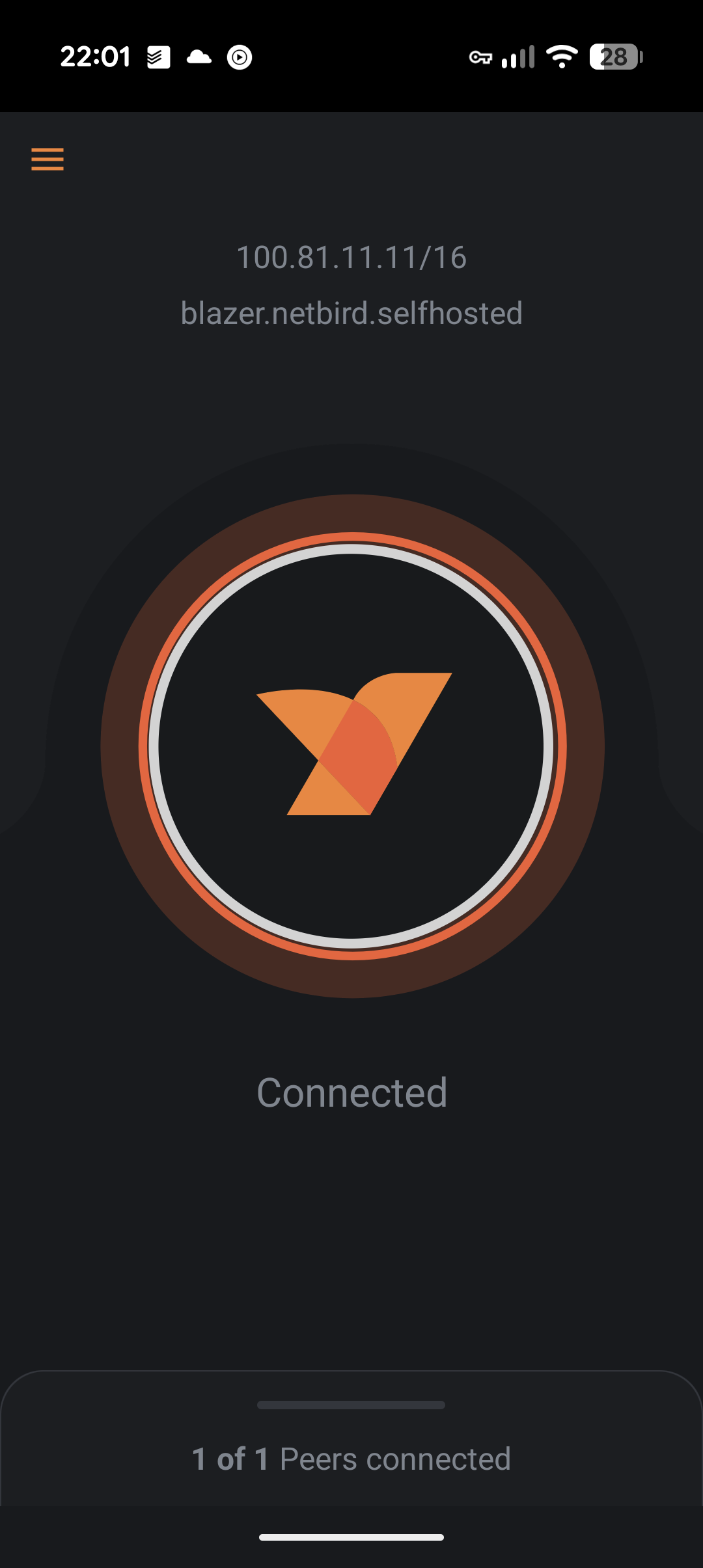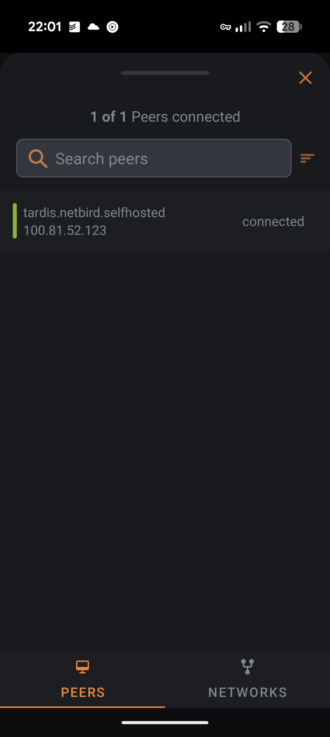 Once we are connected on the phone, we can navigate to the Netbird dashboard which has a nice UI showing the peers and connections between them. (Don’t worry, we can add more peers later).